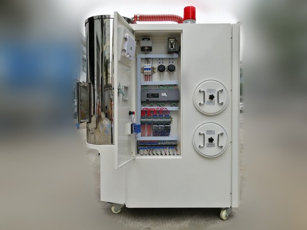 –、吸料部分:吸料是從儲(chǔ)料桶或其它儲(chǔ)料容器中吸入干燥料桶內(nèi),當(dāng)真空料斗的磁簧開關(guān)偵測(cè)到無(wú)料時(shí),吸料馬達(dá)運(yùn)轉(zhuǎn),使真空料斗內(nèi)產(chǎn)生真空,儲(chǔ)料桶中的原料由于空氣的壓力差被吸入真空斗內(nèi),當(dāng)吸料時(shí)間完成后,吸料馬達(dá)停止運(yùn)轉(zhuǎn),原料會(huì)因自重落入干燥料桶內(nèi).經(jīng)干燥后的原料從干燥料桶抽到安裝在成型機(jī)的光電料斗或微動(dòng)料斗內(nèi).